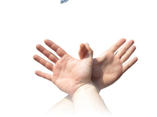 zahacz obie ręce kciukami o siebie a następnie rozszerz palce obu rąk,